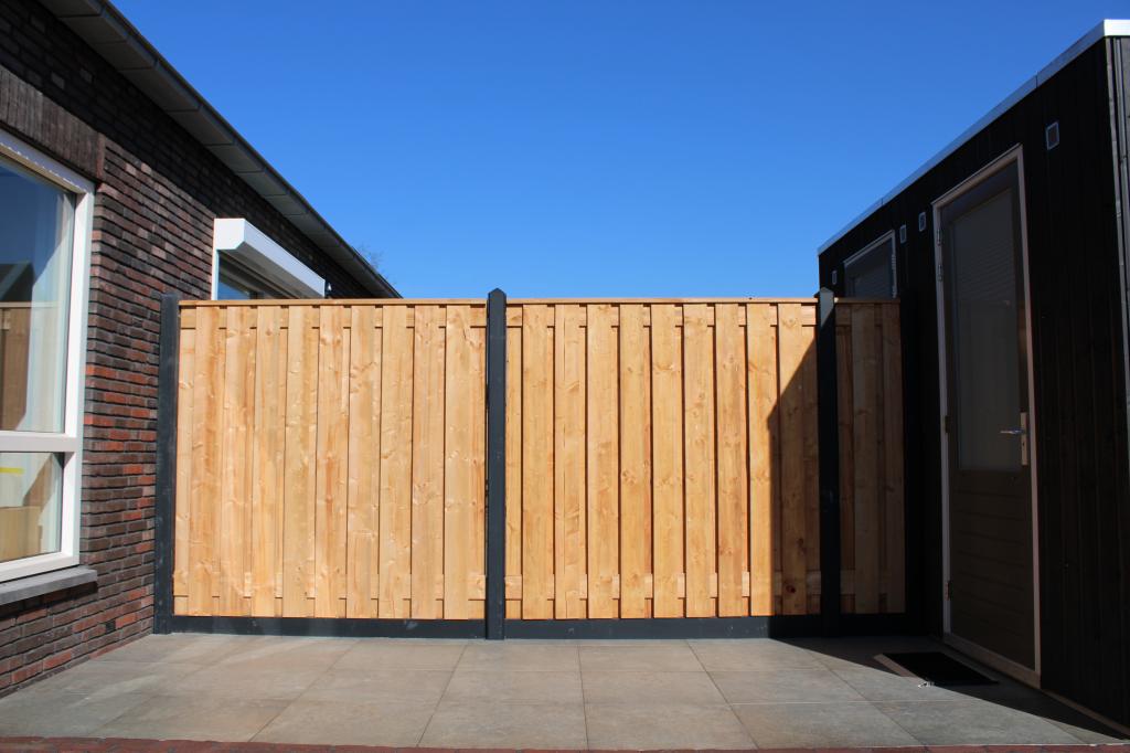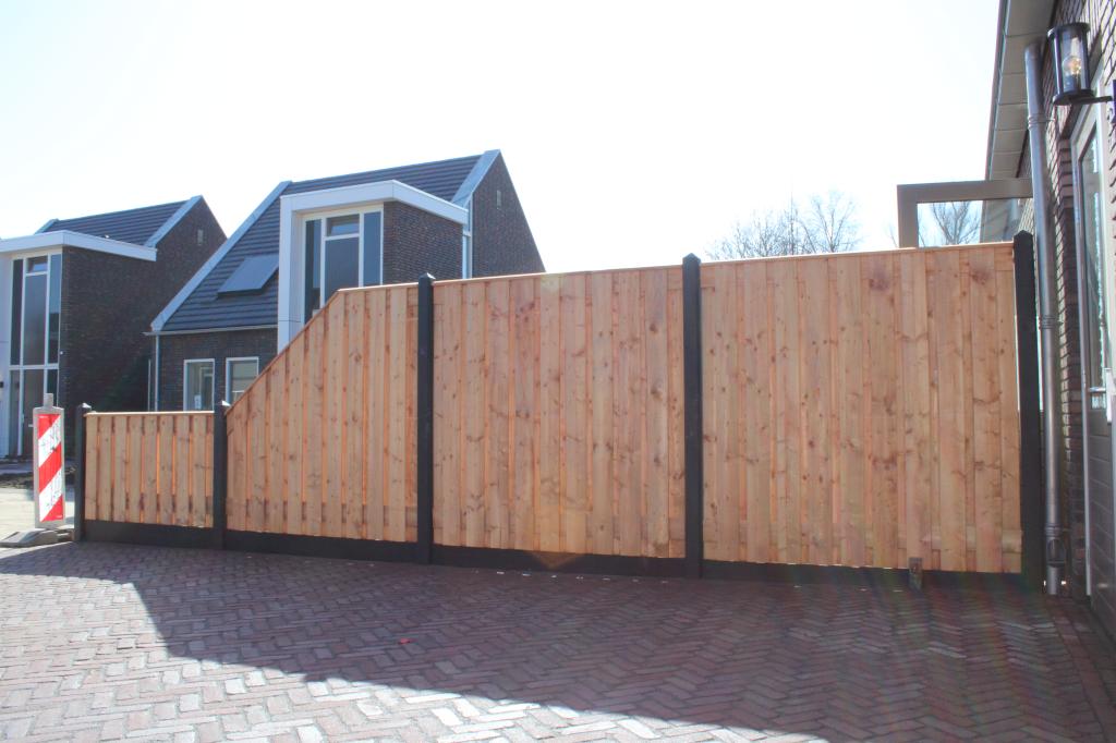 Deze duurzame en stevige combinatie van een red class wood tuinscherm Casablanca en een gecoat betonsysteem gaat heel wat jaren mee! Bij deze schutting is gekozen voor een gladde enkele onderplaat van ± 20cm hoog.