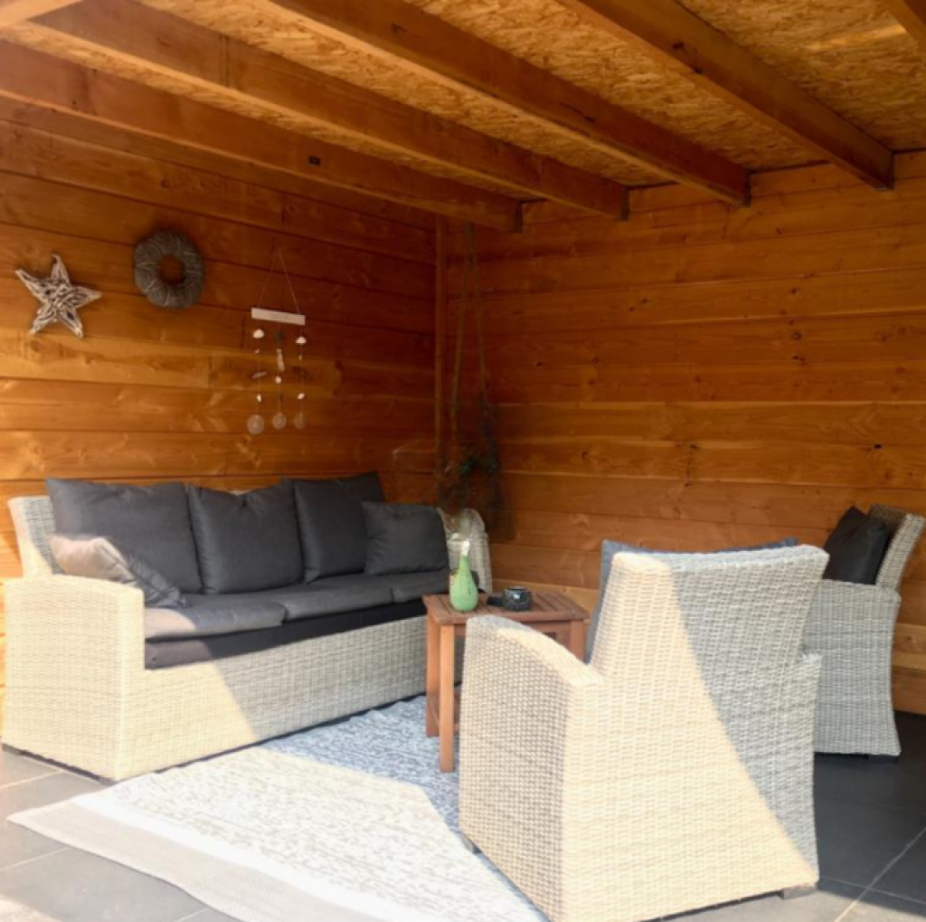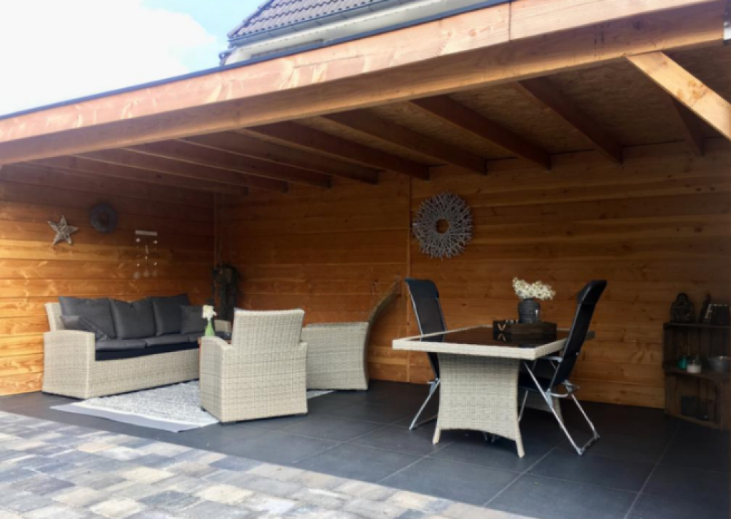 · Maatwerk tuinhuis/overkapping lariks douglas hout (platdak).