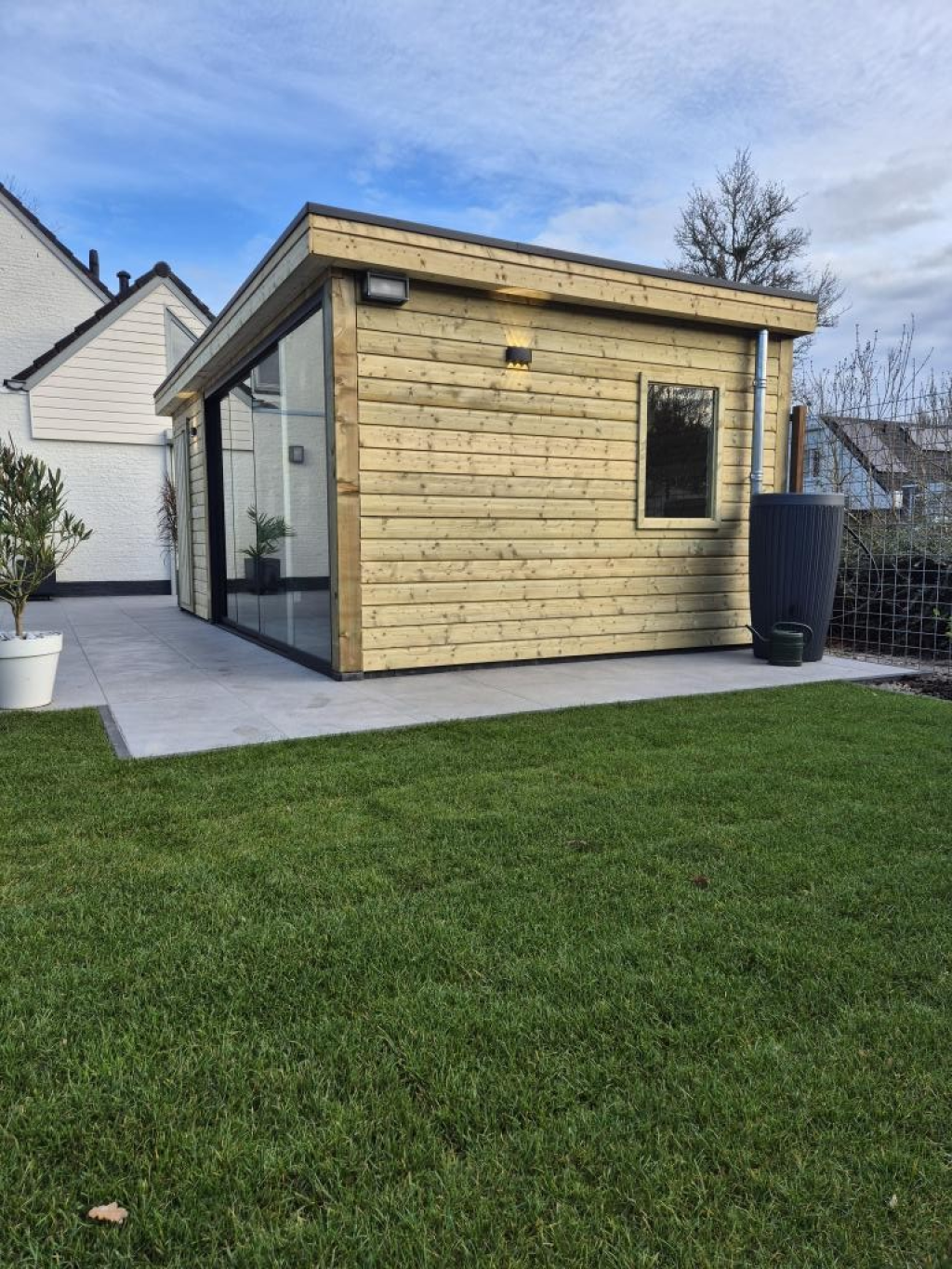 · Maatwerk tuinhuis/overkapping ( vurenhout en wanden van vuren rabat en zwarte tripleprofiel planken