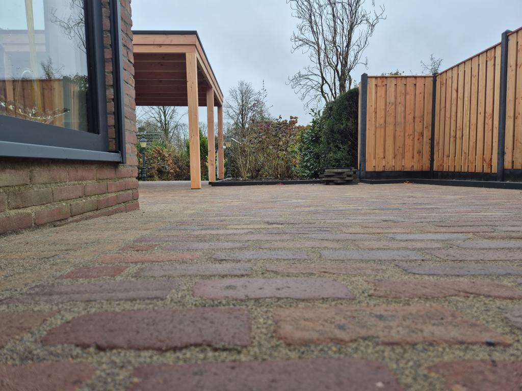 Het bijzondere van deze tuin is dat het straatwerk gevoegd is! Op deze manier heb je geen last van onkruid meer! En daarbij ziet het er super mooi uit!