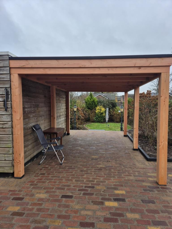 · Maatwerk overkapping lariks douglas hout (platdak).