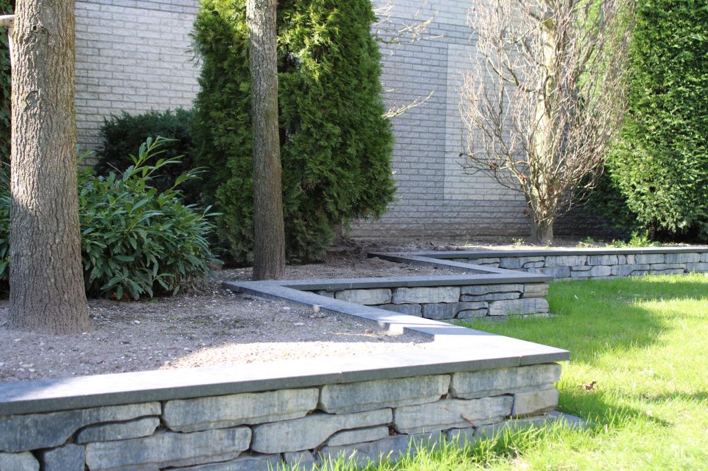 De borders zijn gemaakt van stonewalling grijs/zwart met vijverrand erop.