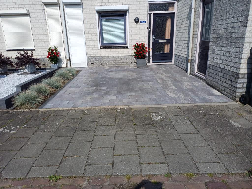 · Straatwerk: tegel soft comfort Grigio 20x30cm voor de oprit en de paden en 60x60cm grigio voor de terrassen