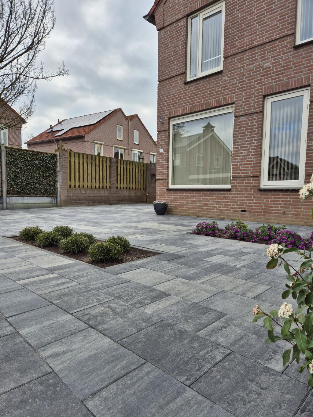 · Straatwerk: tegel beton 30x40 grijs/zwart