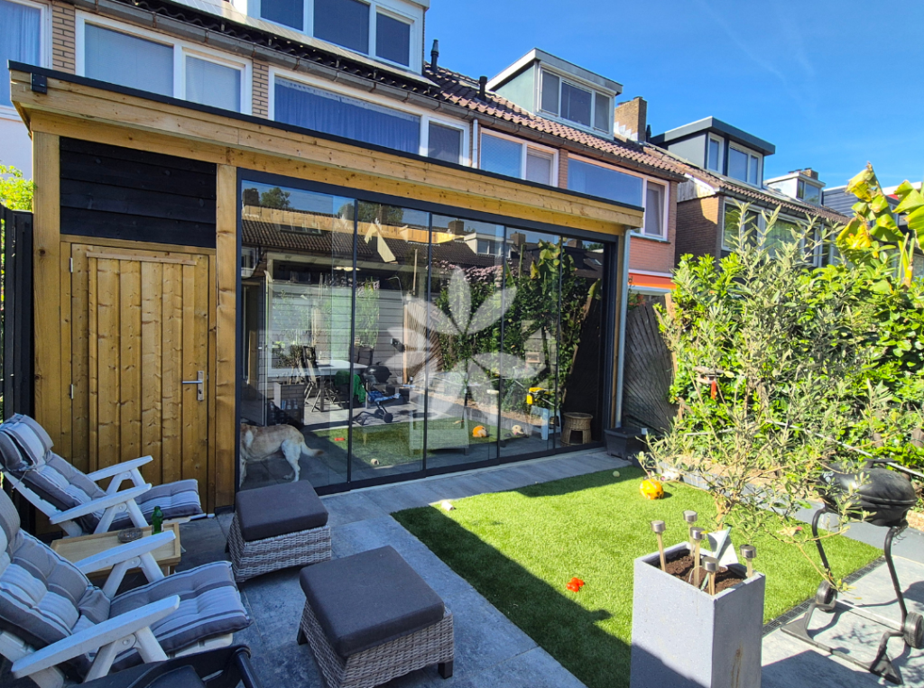 Deze moderne buitenkamer in combinatie met een lichtstraat en glazen schuifwand is ideaal voor alle gezinstuinen. Samen lekker borrelen, eten of gewoon samen genieten tot laat in de avond. In deze buitenkamer is het allemaal mogelijk doordat het volledig is geïsoleerd en je de buitenkamer kunt dicht maken met de glazen schuifwand. Het mooie aan dit project is dat wij de complete tuin hebben mogen aanleggen!