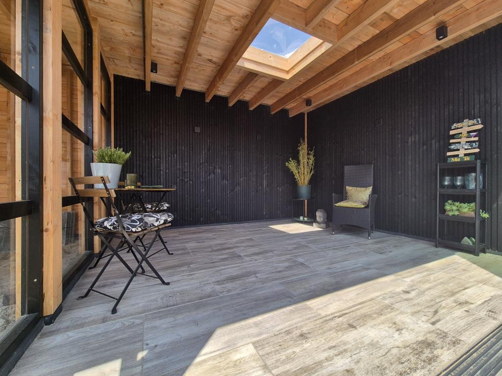 Deze moderne tuinkamer in combinatie met carport is ideaal voor alle gezinstuinen. Samen lekker borrelen, buiten eten of gewoon samen genieten tot laat in de avond. In deze buitenkamer is het allemaal mogelijk! Daarnaast is het nog mogelijk om bijvoorbeeld je motor veilig en droog te zetten in de carport!