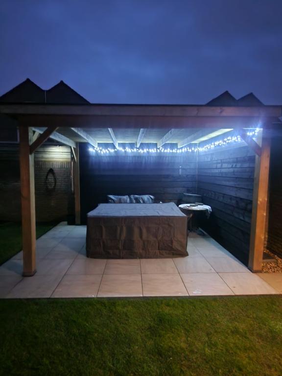 Deze moderne vuren geïmpregneerde overkapping in combinatie met zwart gespoten potdekselplanken is ideaal voor de meeste gezinstuinen. Samen lekker borrelen, buiten eten of gewoon samen genieten tot laat in de avond. Onder deze overkapping is het allemaal mogelijk!