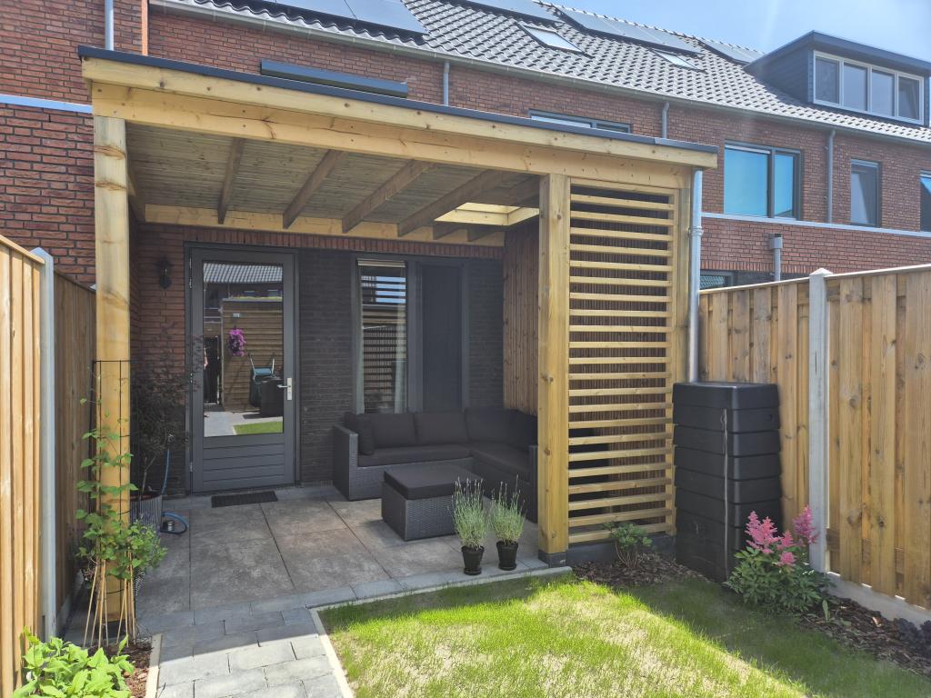 Deze moderne overkapping is ideaal voor alle gezinstuinen. Samen lekker borrelen, buiten eten of gewoon samen genieten tot laat in de avond. Onder deze overkapping is het allemaal mogelijk! De lichtkoepel zorgt net voor wat meer licht en de spijlenwand geeft de overkapping een luxe uitstraling!