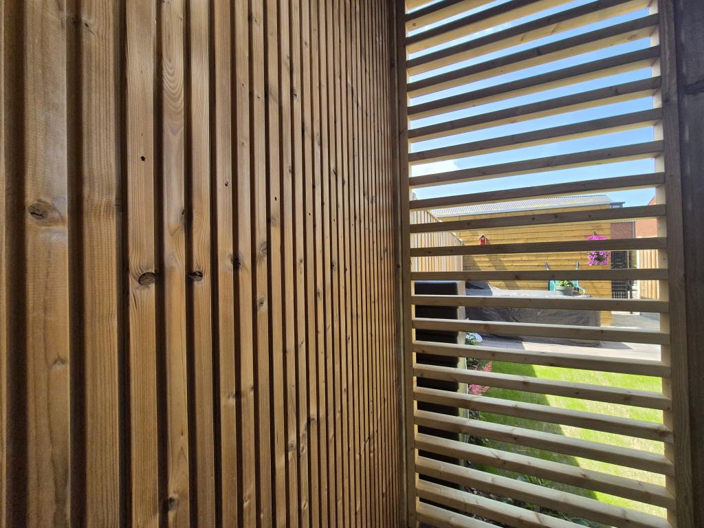 § Wanden: vuren rabatdelen en caldura triple profiel verticaal