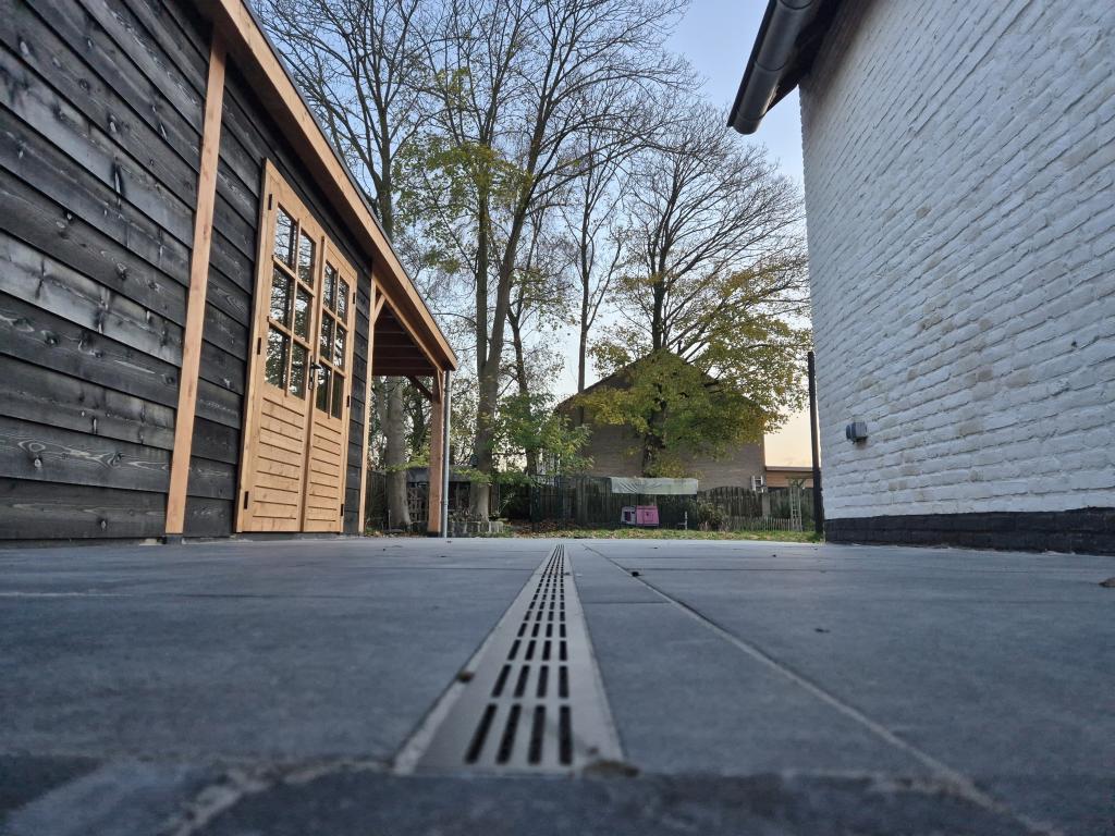§ Straatwerk: betontegel grijs/zwart 60x60cm en abbeystones bobbio 20x30cm