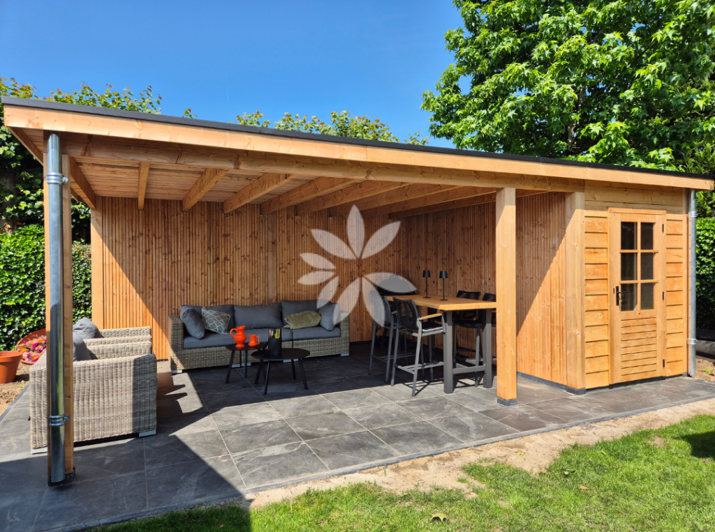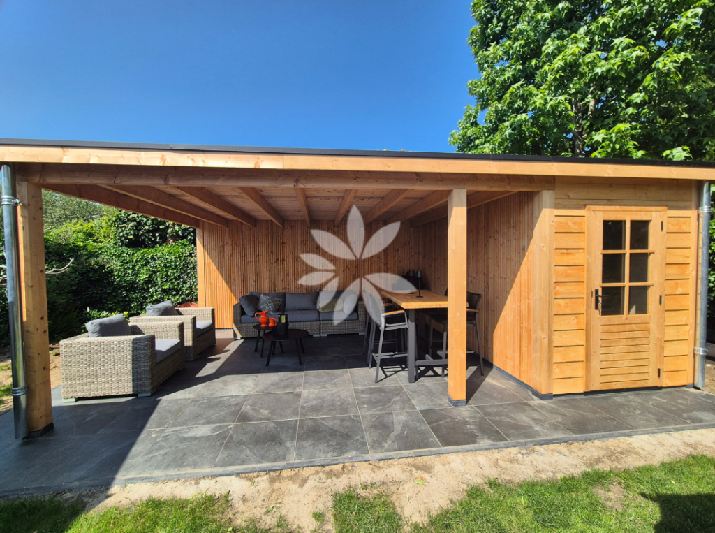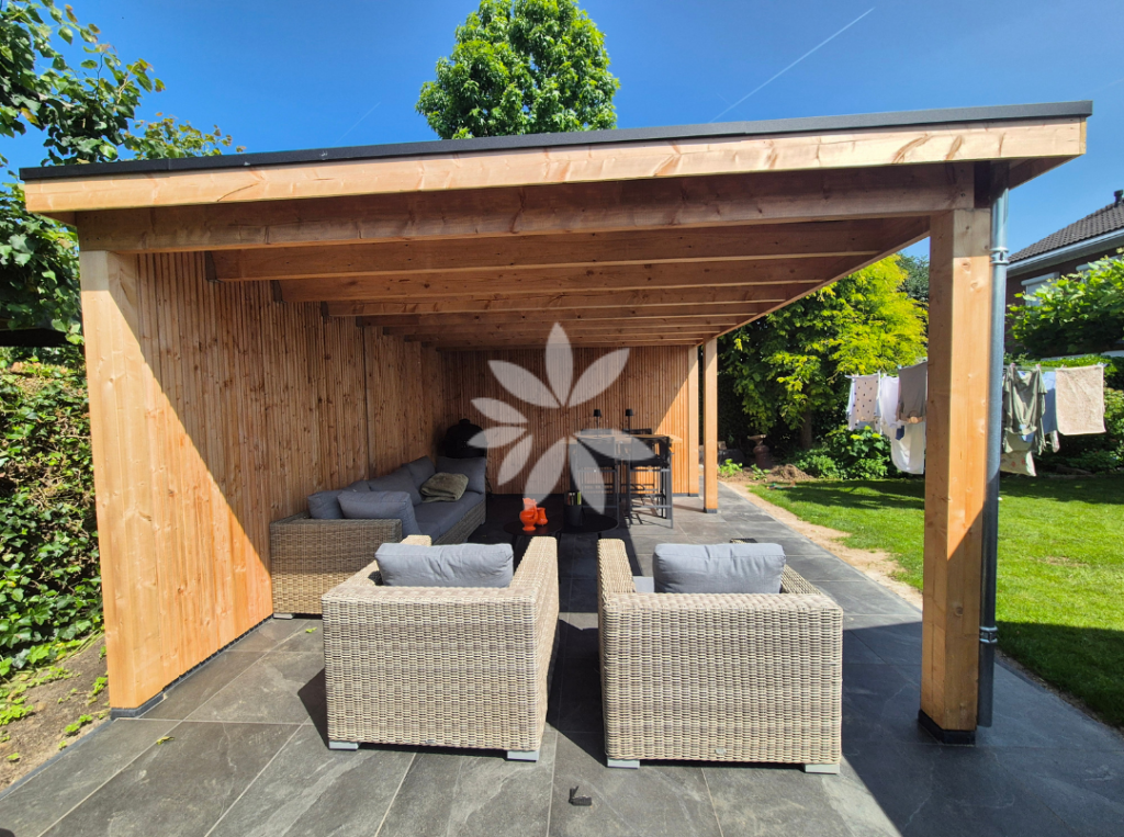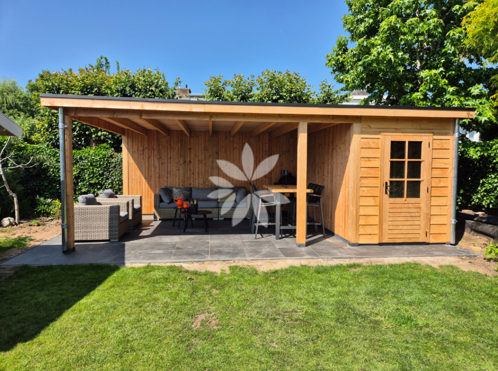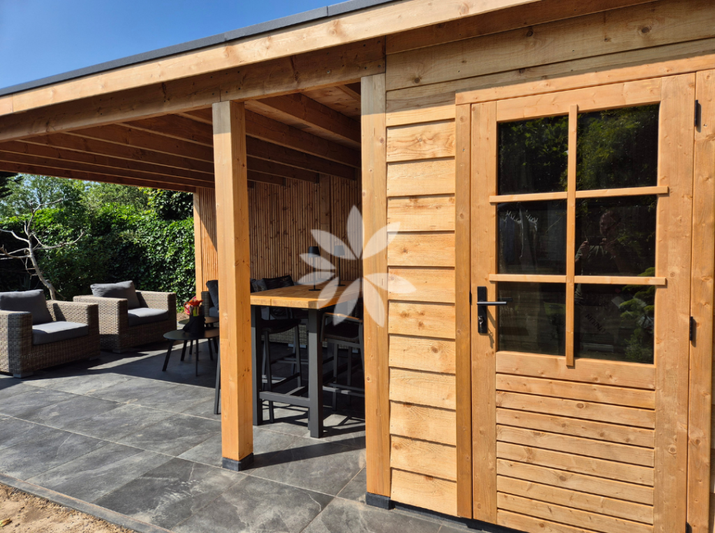 Het maatwerk tuinhuis/overkapping bestaat uit: