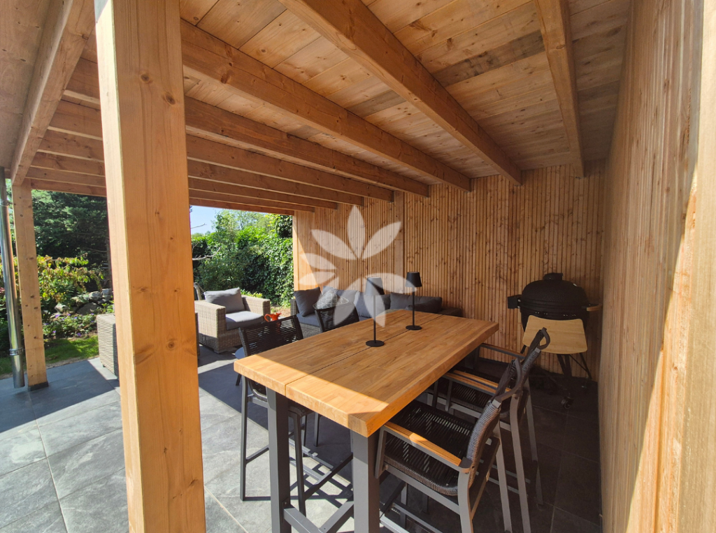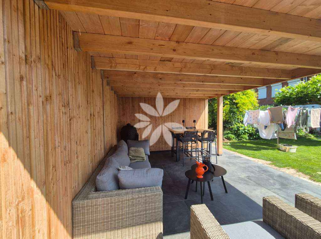 Deze moderne overkapping in combinatie met tuinhuis is ideaal voor alle gezinstuinen. Samen lekker borrelen, buiten eten of gewoon samen genieten tot laat in de avond. Onder deze overkapping is het allemaal mogelijk!
