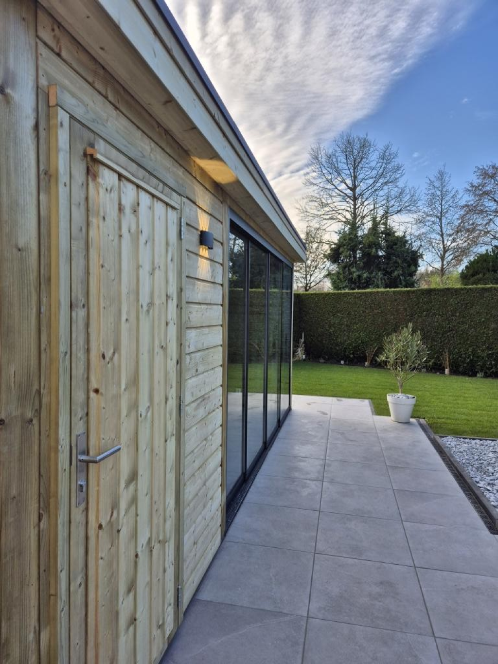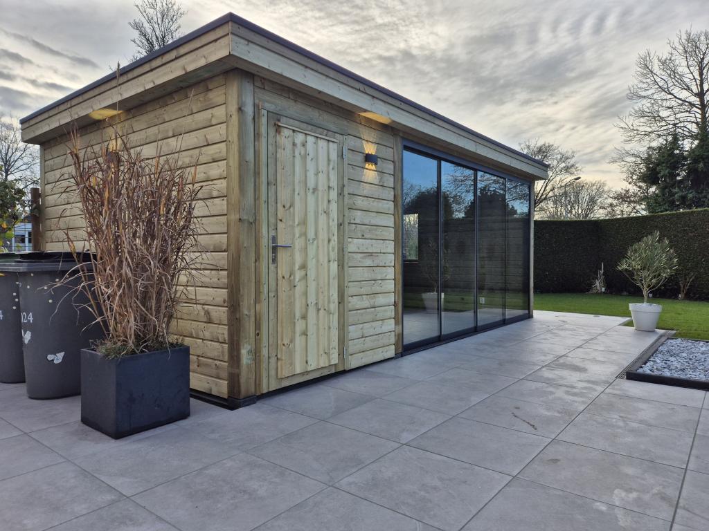 Het maatwerk tuinhuis/overkapping bestaat uit: